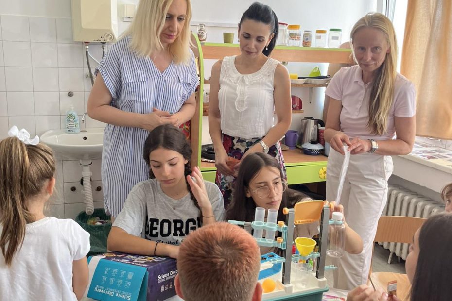 Дана 5.9.2025. у оквиру двочасовних заједничких активности осмака и предшколаца, имали смо једну занимљив активност. Наставница хемије Бојана Томић поклонила је предшколцима мини лабораторијски сто на склапање. Предшколци и осмаци су кроз тимски рад најпре склапали лабораторију. Након што су… Прочитај више »Занимљива хемија кроз основни вокабулар енглеског језика за предшколце