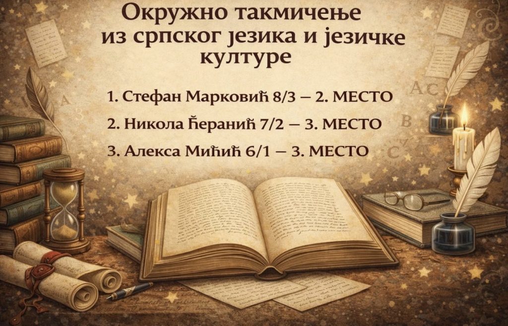 На Окружном такмичењу из српског језика и језичке културе, одржаном у недељу 22. 3. 2026. у ОШ „Анта Богићевић“ у Лозници, ученици наше школе остварили су следеће