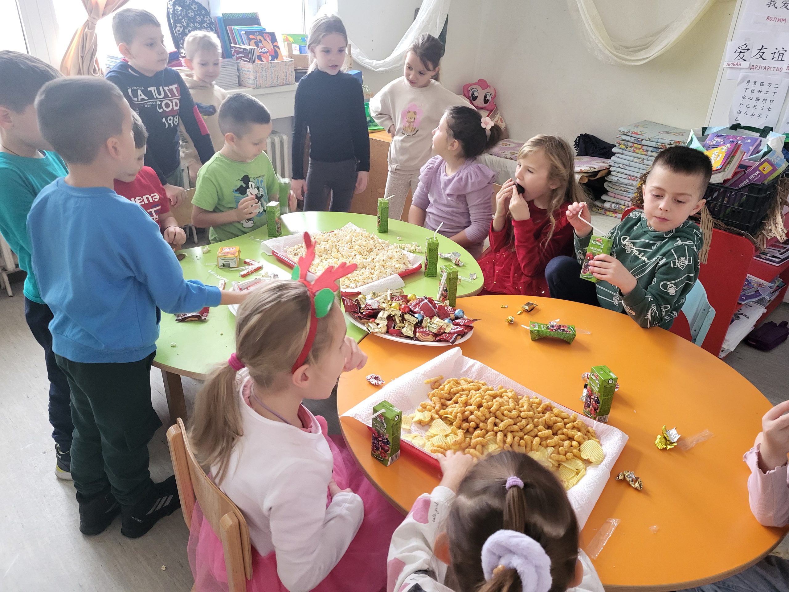 Предшколци су са својом учитељицом Радмилом Лукић прославили празничну атмосферу. Заједно су се сликали са Деда Мразом, китили јелку која је засијала у пуном сјају и писали прелепе честитке. Празнична радост и љубав су у ваздуху, а сваки тренутак је испуњен смехом и срећом.