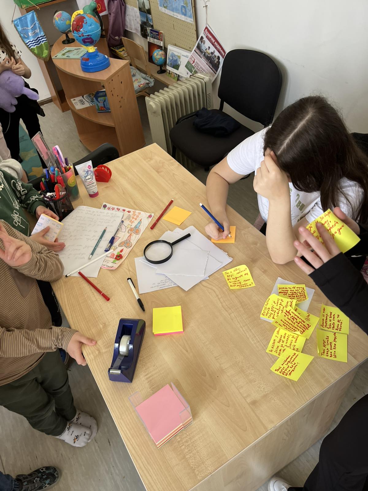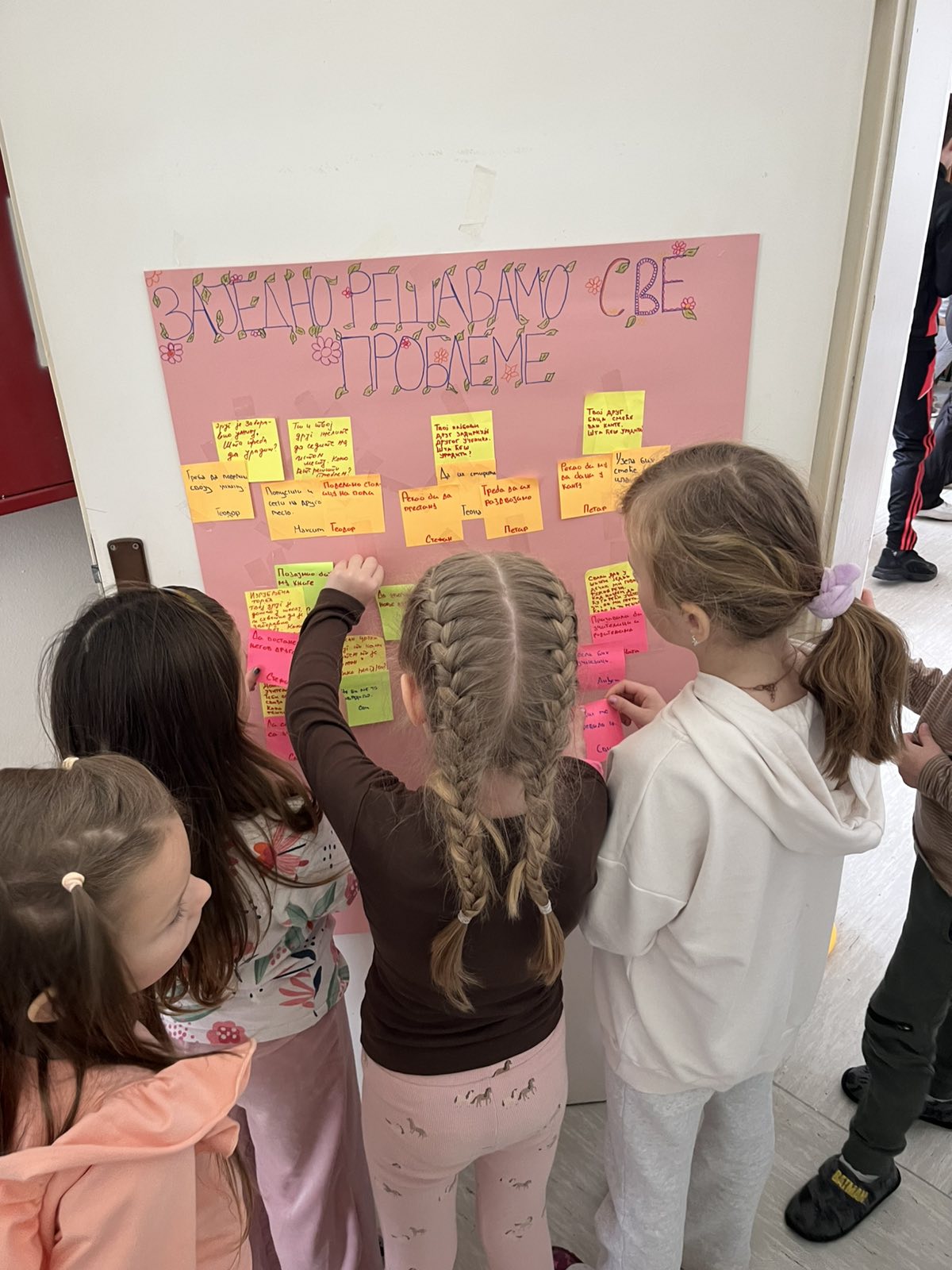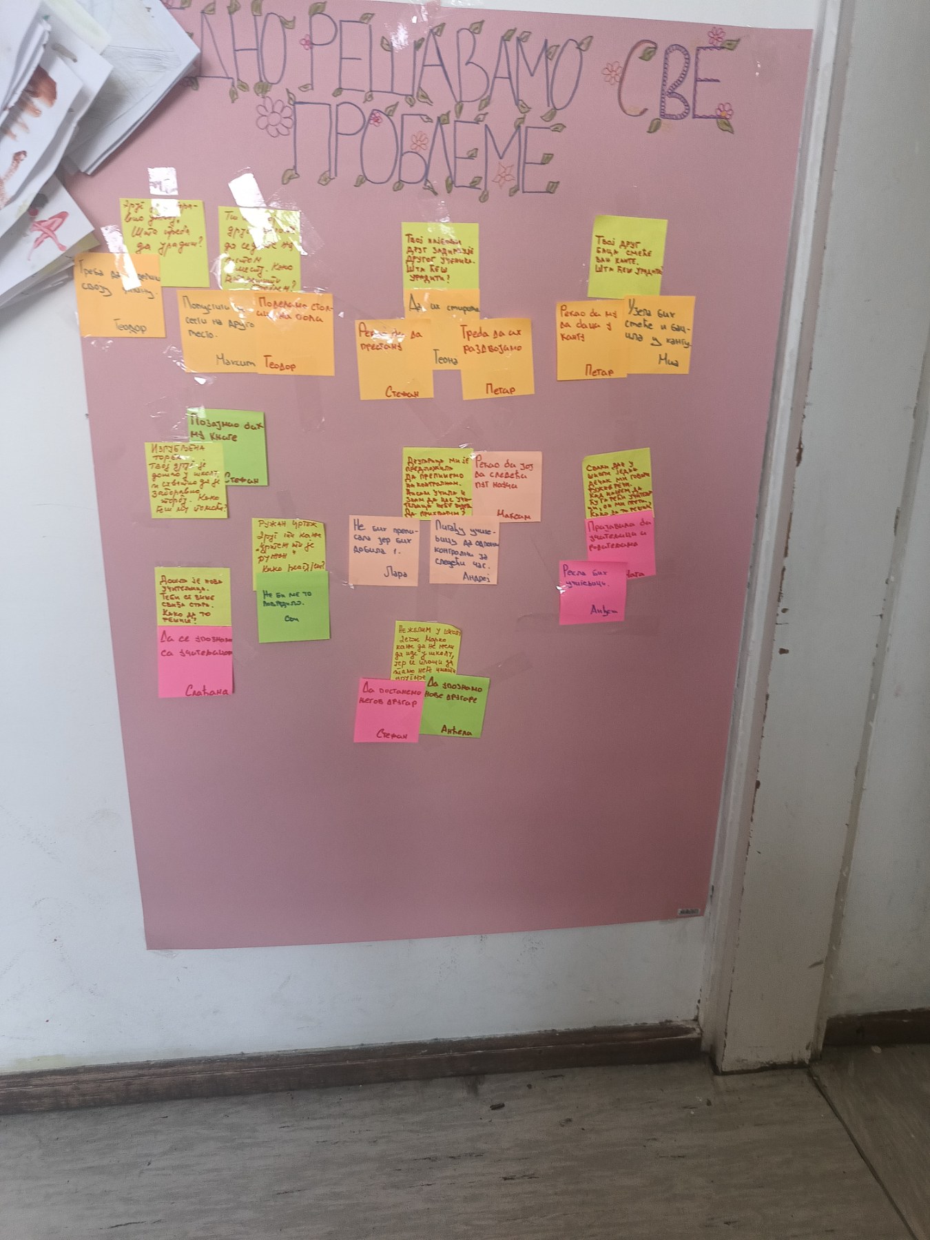 Посебно занимљив део активности били су задаци у којима су деца добијала различите ситуације и изазове који се могу десити у школи. Предшколци су морали да се сналазе, размишљају и предлажу решења, а њихови одговори били су веома различити, маштовити и оригинални. Своје идеје су записивали и лепили на хамер, стварајући заједнички пано са решењима и предлозима. Оваква активност помогла им је да кроз игру науче како да реагују у стварним школским ситуацијама, али и да развијају самосталност, сарадњу и сигурност у себе.