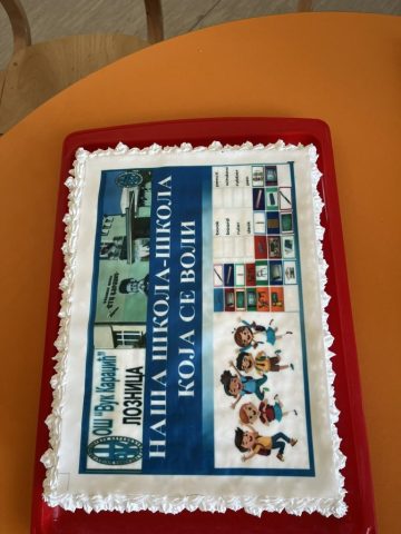 На крају дружења припремљено је и слатко изненађење – торта са јестивом налепницом „Наша школа – школа која се воли“, коју су сви заједно дегустирали. Налепницу за торту осмислила је Сања Симић де Граф а урадила професорка угоститељства Дејана Лазаревић.