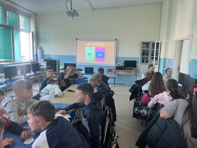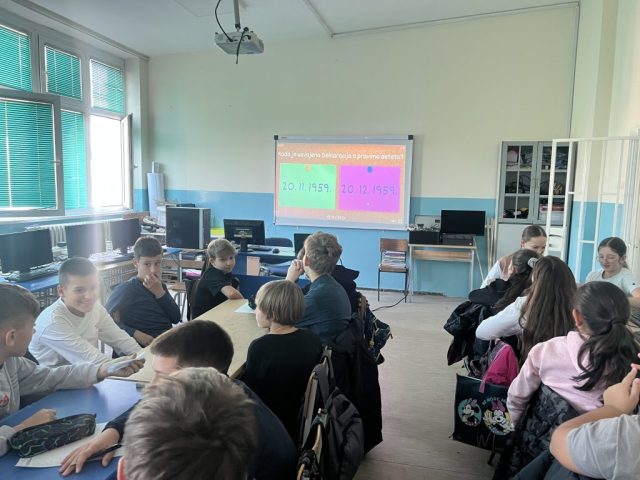 Поводом Светског дана детета, ученици одељења 6/2 на часу информатике имали су интеграцију са часом енглеског језика. На часу им је приказан видео на енглеском језику о Светском дану детета, а након тога је садржај прочитан и на српском језику. Наставница информатике, Александра Деспотовић, и наставница енглеског језика, Сања Симић Де Граф, припремиле су материјал и организовале активност.