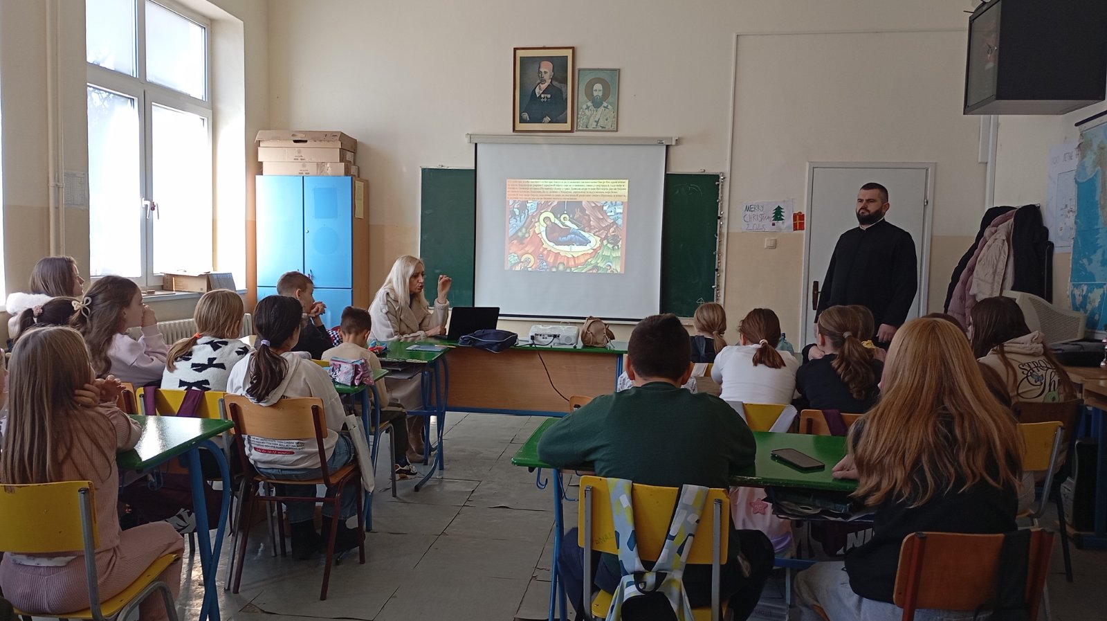 Тематски дан смо започели предавањем вероучитеља Душана Станојевића о Божићу и празницима којиму претходе кроз интерактиву презентацију са мини квизовима ,,Од Благовести до Божића“ са мини квизовима утврђивања градива, чији је аутор педагошка саветница Сања Симић де Граф.