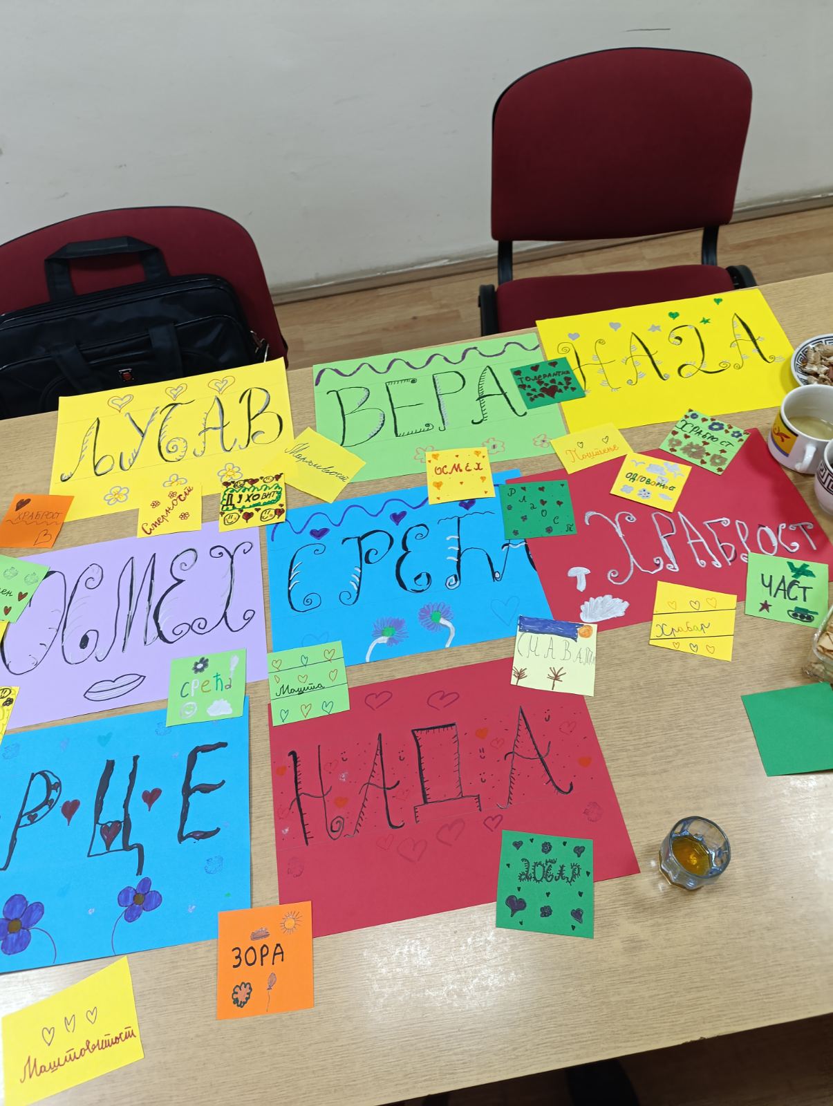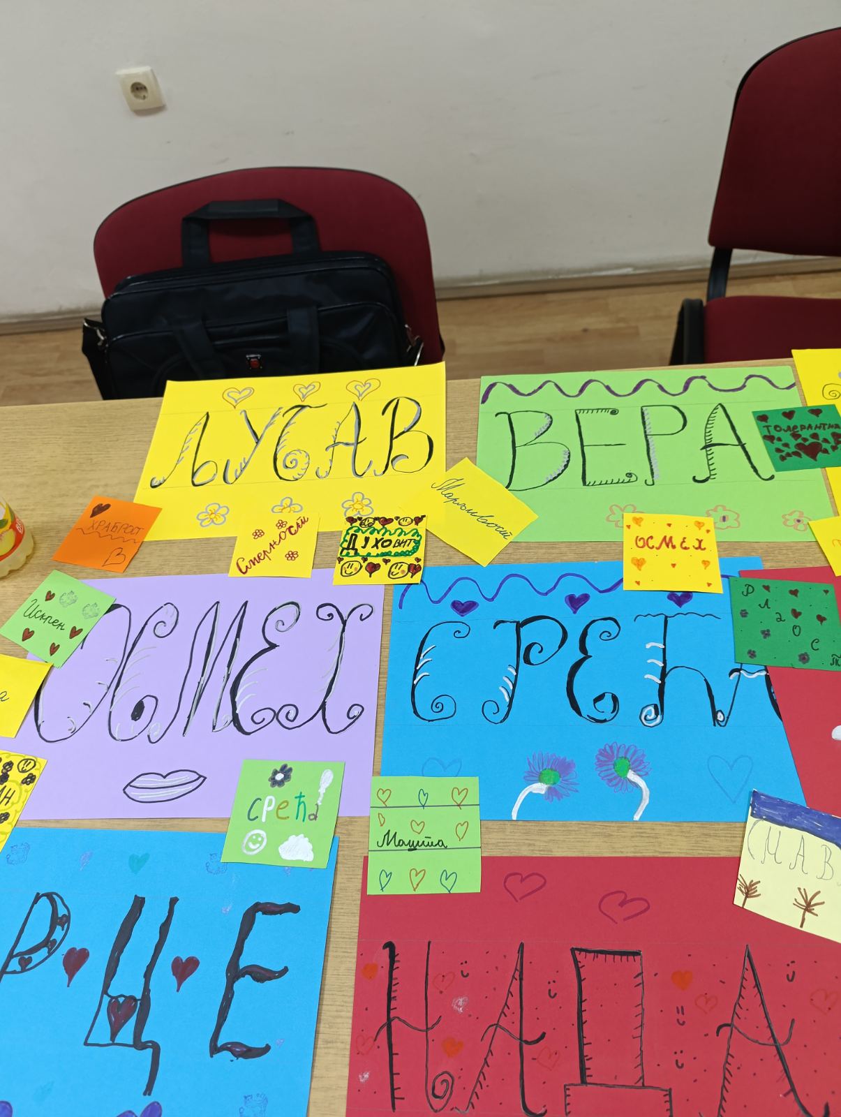 Ученици млађих разреда заједни са својом учитељицом Миланком Васиљевић имали су радионицу лепих речи. Најпре су на разнобојим цедуљицама писали лепе речи и убацивали у једну украсну кутију, а затим су имали и ликовну радионицу посвећену лепим речима. Ученици виших разреда заједно са вероучитељем Душаном Станојевић подсетио је ученике на лепе речи кроз богословски речник а након тога ученици виших разреда добили су задатак да, такође, те речи убаце у украсну кутију и кроз ликовну радионицу представе те речи и калиграфски их испишу заједно са својим наставником Анђелком Тешмановићем.