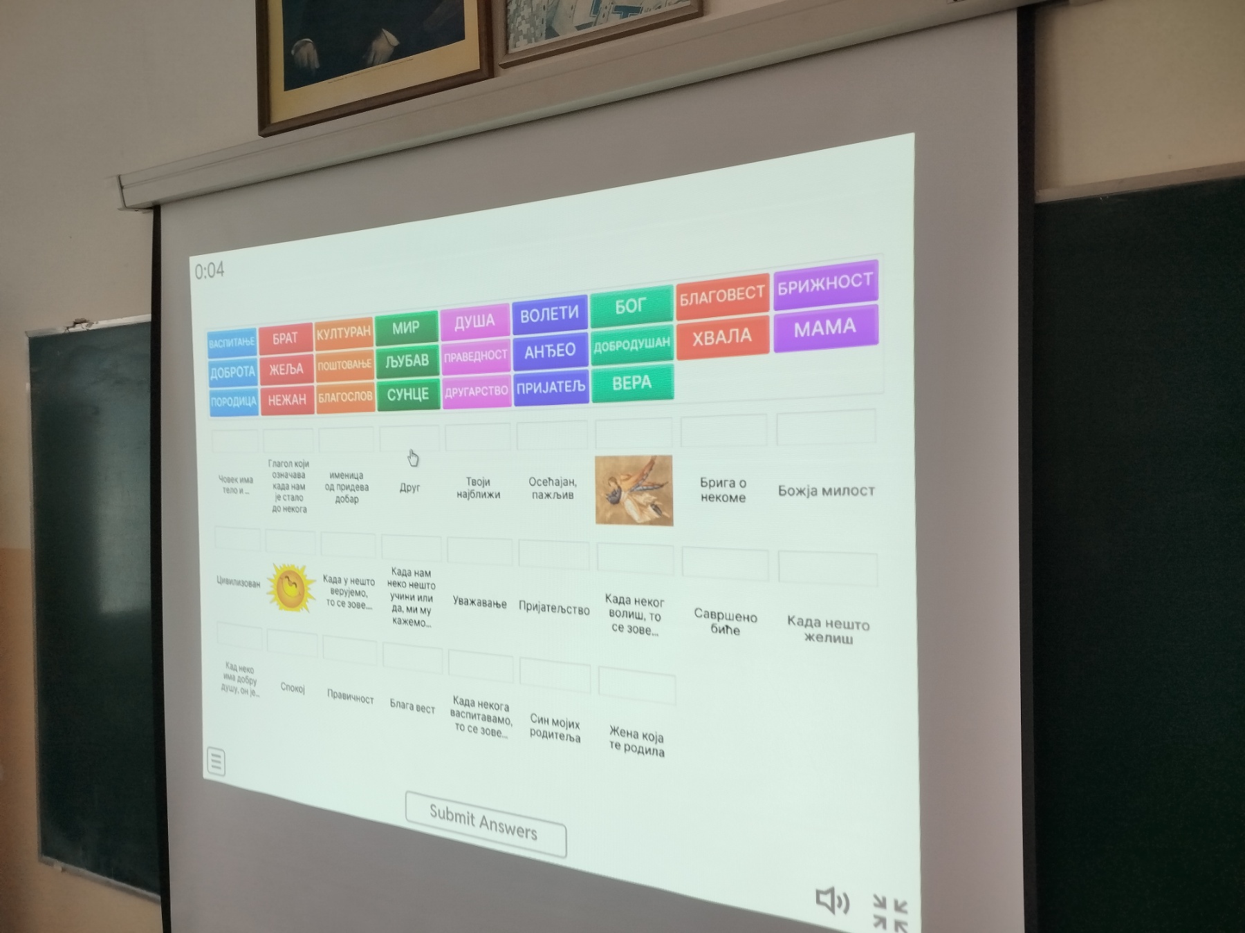 Ученици млађих разреда матичне школе претходних дана убацивали су у кутију лепе речи а на основу тих речи наставница Сања Симић де Граф направила је квиз за њихове вршњаке у ИО Зајача који се састојао од различитих енигматских изазова-осмосмерки, укрштеница, анаграма, спајалица…
