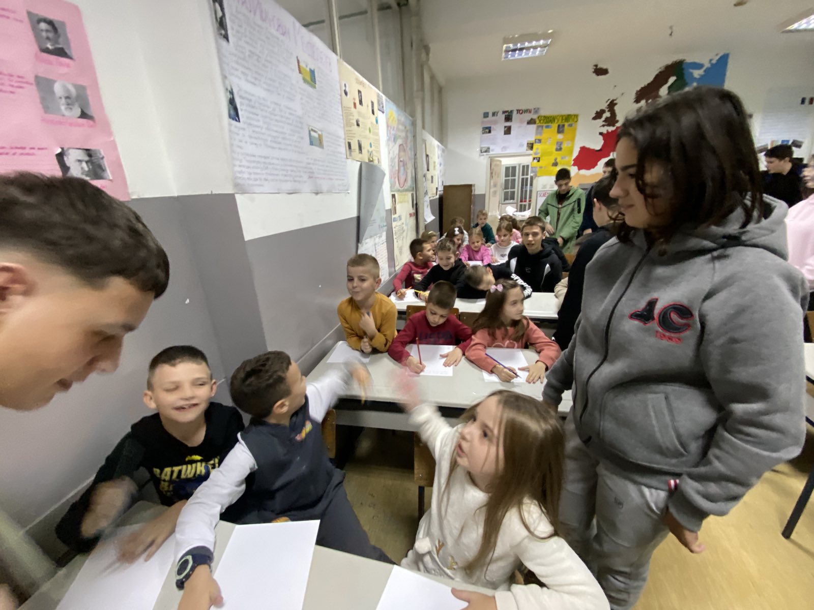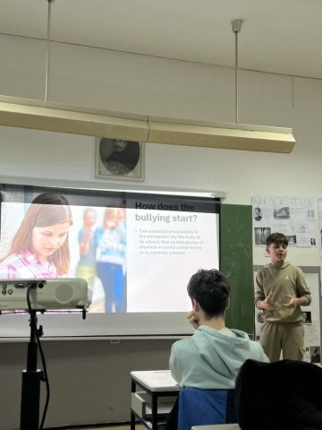 У сусрет Светском дану детета, који се обележава 20. новембра, дана 18.11.2024 ученици одељења 8-3 заједно са одељењским старешином Сањом Симић де Граф имали част да угосте ученике 2-3 и њихову учитељицу Снежану Цветиновић и да заједно ураде радионицу о превенцији вршњачког насиља.