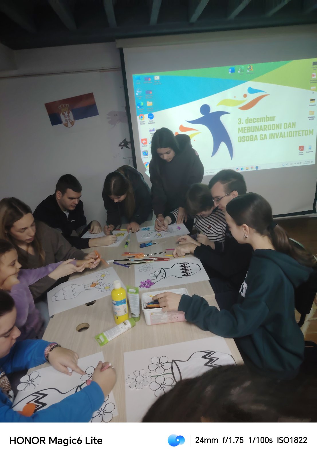 Дана 19.11.2025.ученици одељења VII1 заједно са наставницом енглеског језика и педагошком саветницом Сањом Симић де Граф учествовали су у социо-едукативној радионици за децу са сметњама у развоју у Омладинском центру.